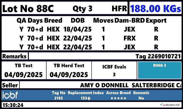 Friday 27 Mar, Ring 2, Calf Sale, Intake 10:00, Start 15:00